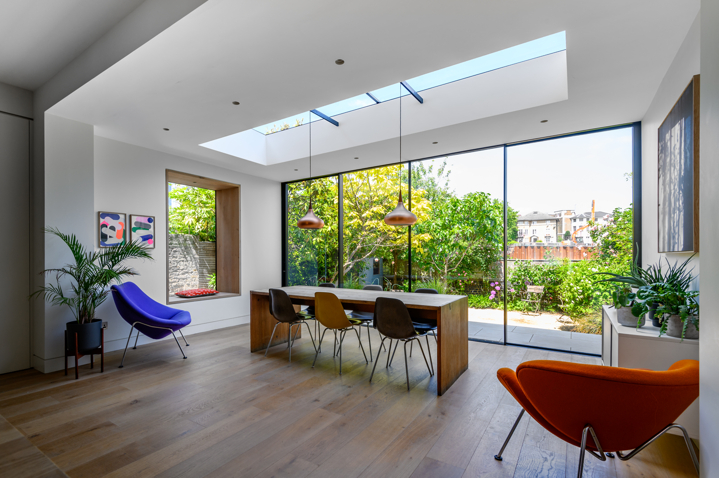 Using powder coated aluminium for the sides and raw timber for the internal reveals, we can help make a space that fits cohesively in with the rest of your design.